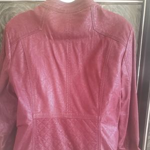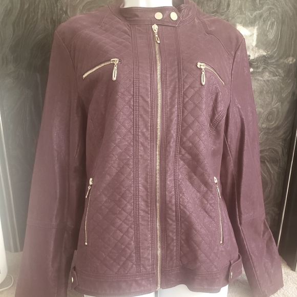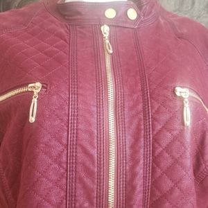 Beautiful burgundy bomber jacket with faux fur lining. Gold tone zipper accents perfect with jeans.