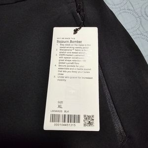 Lululemon Sojourn XL Bomber Black Jacket snap button closure with a tag.