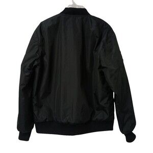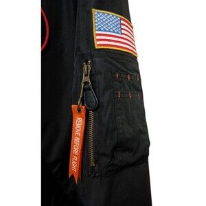 Bomber Jacket Black Mens Large Military Flight Patches Orange Lined Ribbed Cuffs