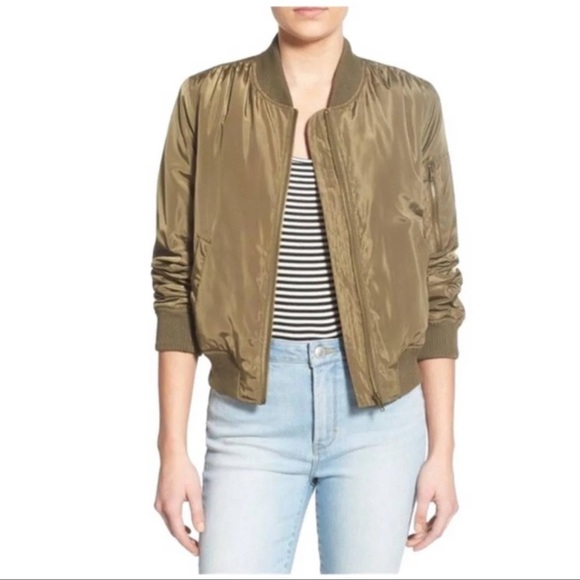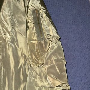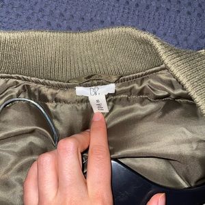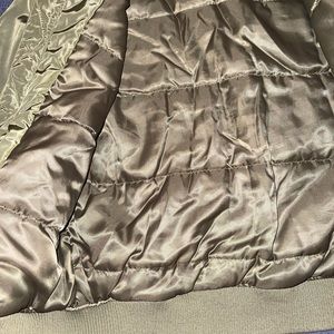 Bp brand from Nordstrom. Olive green bomber jacket that super warm and cozy. Worn a few times. Easily fits someone who’s a small too, maybe medium.