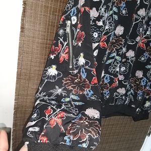 PHILOSOPHY Jacket in patterned satin with a zip down the front, elasticated hem and ribbing around the neckline and cuffs. Chiffon lining. A lightweight bomber jacket. size: LARGE