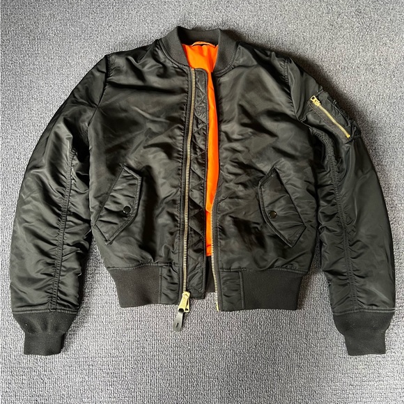 Black bomber jacket.