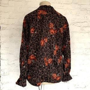 Bomber jacket brown leopard print floral pattern Large lightweight
