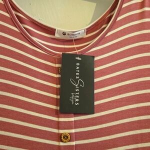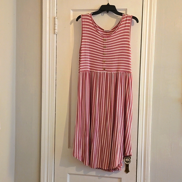 Pink with white stripes, Bates Sister's Boutique Bombom dress with buttons