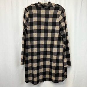 Bombom Womens Cardigan Sweater Black Buffalo Plaid Long Sleeve Open Front Small