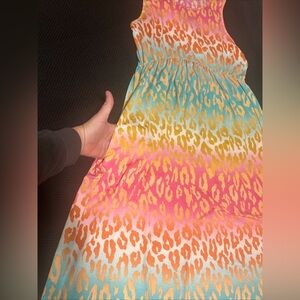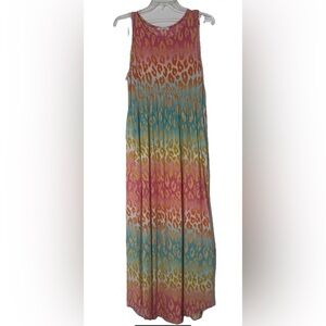 Bombom Women’s M Leopard Maxi Sun Dress Gradient Fade Casual Pockets Lightweight