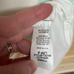 White t-shirt with colorful floral graphics. Features green, pink, and yellow flowers.