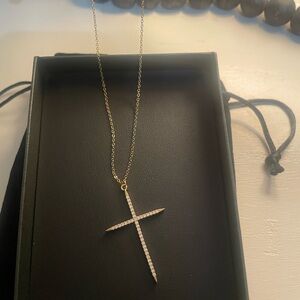 This stunning gold cross pendant necklace is perfect for any occasion. The elegant design features a delicate chain and a sparkling cross, adding a touch of sophistication to your look.