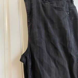 Black with light black stripes printed on the jeans.