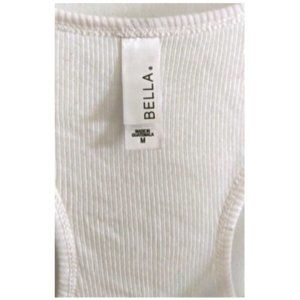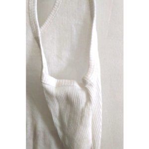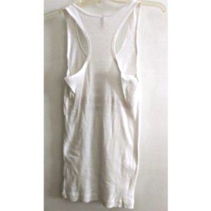 Bombshell Fitness racerback, ribbed tank. White with purple print.
