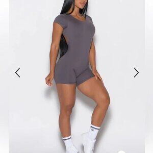 Bombshell OPEN BACK TEE BODYSUIT SHORT | Size: S | Gray Smoke