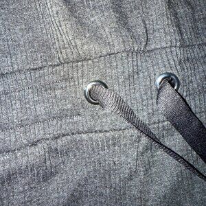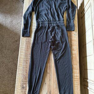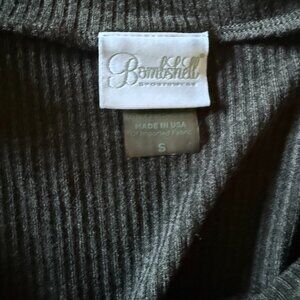 Super cute Bombshell Ribbed Sweats Jogger Long Sleeved Off-Shoulder Charcoal Grey Jumpsuit in Small. Worn once or twice. Looks brand new. Made in USA.