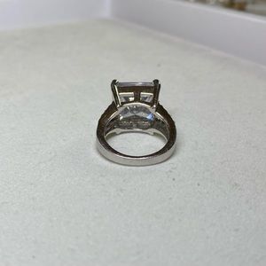 A large, multi-faceted square-cut CZ is the centerpiece of this magnificent ring. The ring’s split shank is encrusted with micro-mini Austrian crystals.