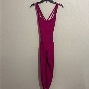 Bold fuchsia jumpsuit by Bombshell Sportswear. Sleek and stylish design. Ideal for active wear.