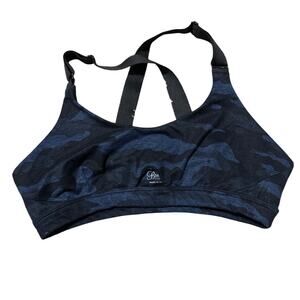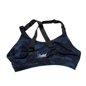 Bombshell Sportswear Sports Bra L. Navy Blue Camo Camoflauge. In VGUC.