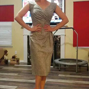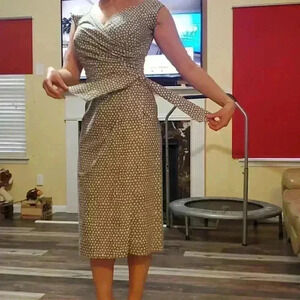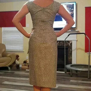 Great condition but has a small hole where zipper ends, that is easy to fix. The dress is not" pinup couture " brand.