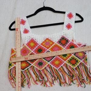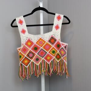 Bomy Collection Crochet Fringe Crop Top Multicolor Boho Festival Size M