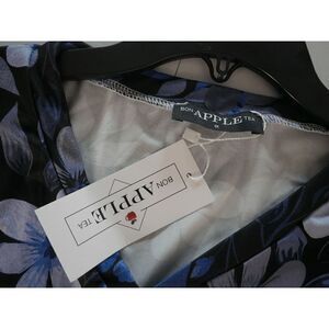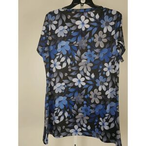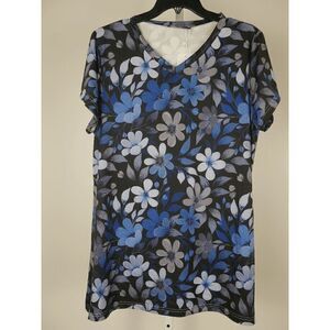 Bon Apple Tea Women's Blue Floral V-neck Short Sleeve T-shirt 1X