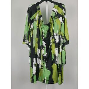 Bon Apple Tea Women's Green & Black Abstract Tie-Sleeve Off-Shoulder Tunic Dress