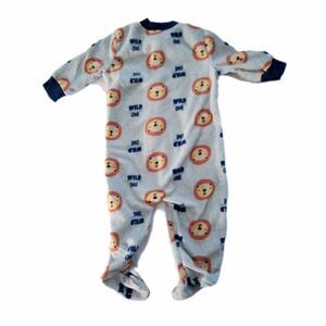 Bon Bebe 2pc Fleece Infant Footed Sleepers sz 0-3M Jungle Lion Gray Blue