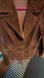 Slight wear on the elbows. I great pre used condition. It is dark brown and is not lined.