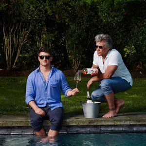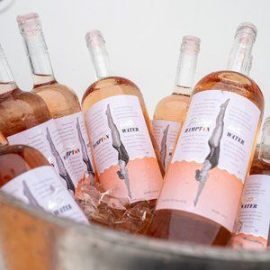 Diving Into Hampton Water Rose' by Bon Jovi empty wine bottle 2017. Wine founded by Bon Jovi and son Jesse. Photo of The Diver on label.