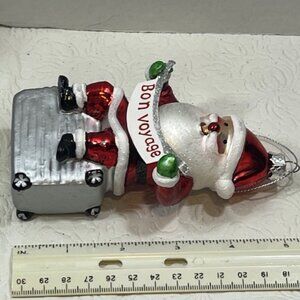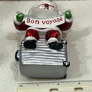 Bon Voyage Travel Christmas Santa Suitcase Glass Glitter Ornament 5"๐