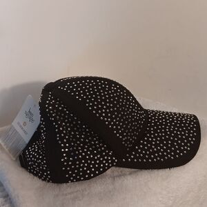 Elevate your style with this New with tags chic black studded cap. Perfect for adding a touch of glamour to any outfit.