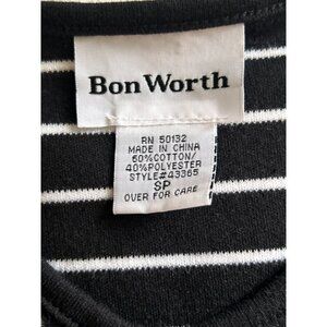 Bon Worth Black & White Striped Short Sleeve Lightweight Sweater, Size SP