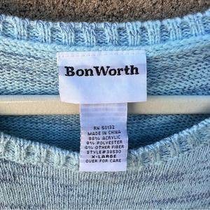 Bon Worth Blue Red Snowman Snow Ugly Cute Christmas Sweater