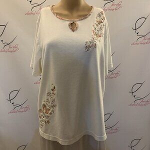 Bon Worth. Size LP. Embroidered Pullover. Short Sleeve. Cotton Blend. B82.