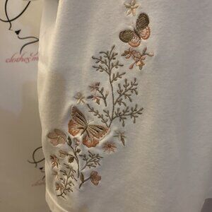 Bon Worth. Size LP. Embroidered Pullover. Short Sleeve 8.7". Soft Cotton Blend. Center back 24". Bust 23/46". Very good pre-loved condition.