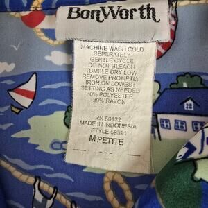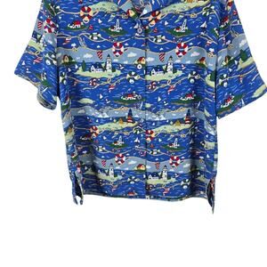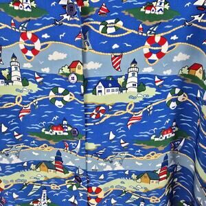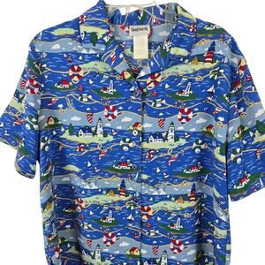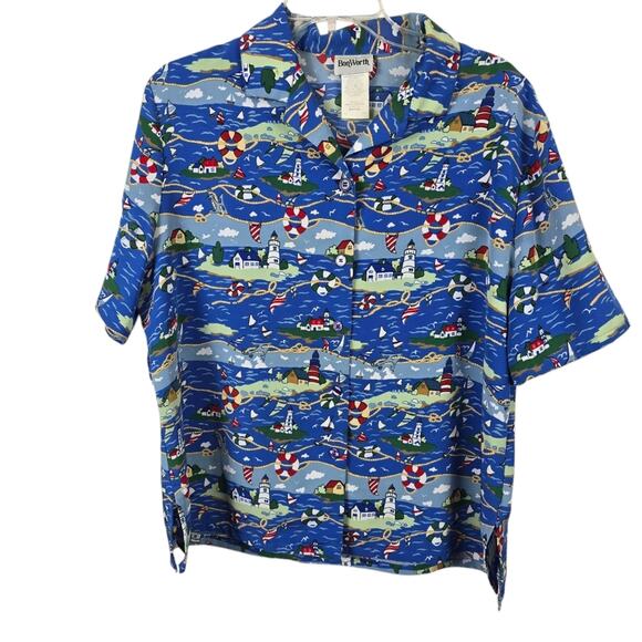 Bon Worth Vtg Nautical Blue Lighthouse Shirt Beachy Coastal Grandmother Aloha MP