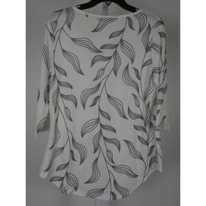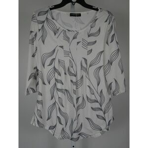 Bon Apple Tea Women's White & Gray 3/4 Leaf Printed Top M