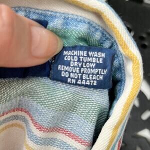 Vintage Color Block 90s Blue, Green, Red, White, and Yellow Striped Button Down Shirt with Front Pocket. Size Large