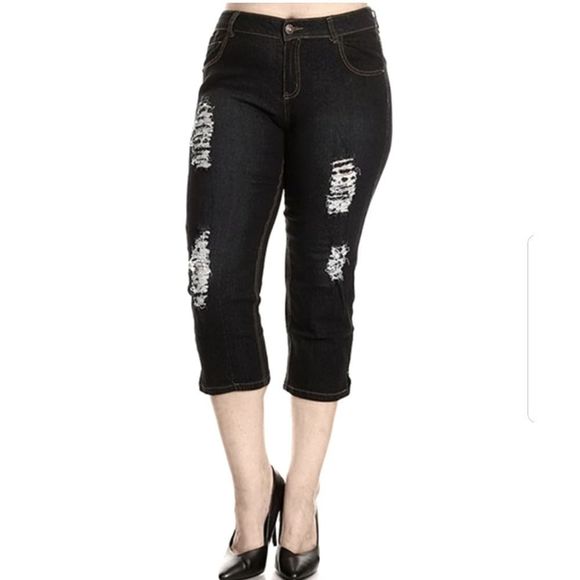 Bon.Jeans Premium Denim High Rise Cuffed Black Distressed Capri Jean's NWT