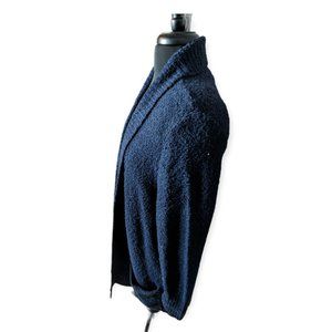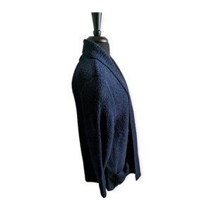 EUC open front, navy blue, sweater cardigan. This cardigan has shoulder pads. See pictures for measurements.
