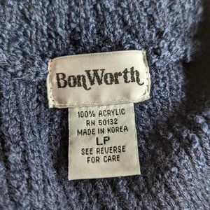 BonWorth Open Front Navy Blue Sweater Cardigan Size LP