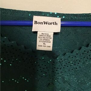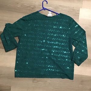 Green Sequined Button Up Long Sleeve Shirt XL 93% Polyester 7% Spandex. Approximate Measurement PTP 23 Inches. Length 29.5 Inches