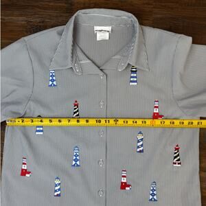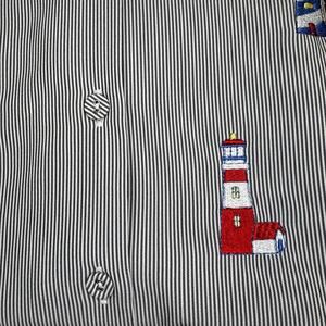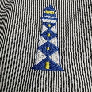BonWorth sz MEDIUM vintage embroidered lighthouse striped button up shirt