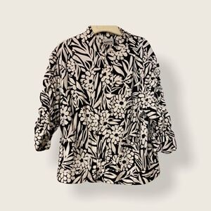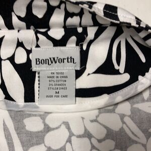 BonWorth Women’s jacket, Gathered 3/4 length sleeves, zippered 2 front pockets , lightweight, Medium, black/white.Please see pictures for measurements before purchasing for a correct fit. Cotton spandex blend. Don’t forget to bundle and save.This saves on shipping as well as pricing.