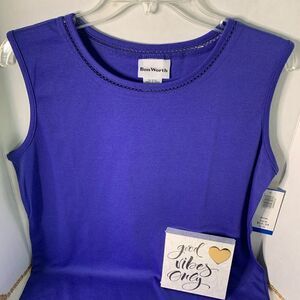 Blue sleeveless top with small opening trim around neck line