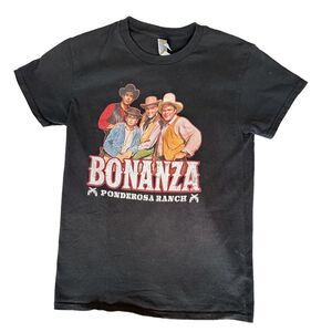 Black cotton short sleeve t-shirt with Bonanza graphic. Nostalgic TV western that ran from 1959=1973. Size S measures 17” pit to pit, 25” long. Very good condition.