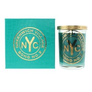 Luxurious Bond No. 9 candle in a teal glass with gold accents. Perfect for adding a touch of elegance to any room. 6.4 oz. 60 hours burn time. New in box. MSRP $125.