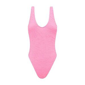 Allover texturing defines this classic one-piece with a scooped-out low back, high legs and enough stretch to adjust the coverage however you like.