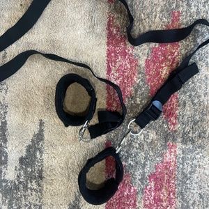 The cuffs Velcro to adjust to wrist/ankle size. The strap goes under the bed but could also be used in other ways. Get frisky!