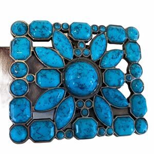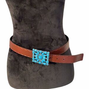 Bonded Brown Leather Belt w/ Beautiful Faux Turquoise Buckle.