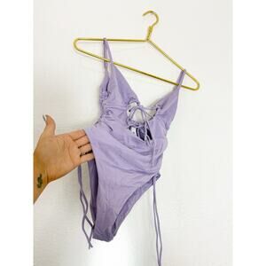 Bond-eye New Wave Tied Together One Piece Size XS Lavender Cut Out Swimsuit
