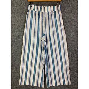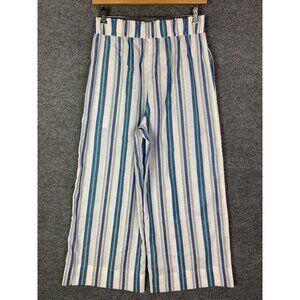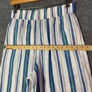Bondi Born Women’s Fluid Drawstring Linen Blend Light Blue Wide Leg Pants Sz L