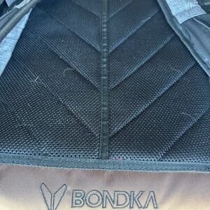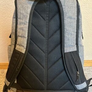 multiple pockets, padded back, straps, & interior pocket for laptop.